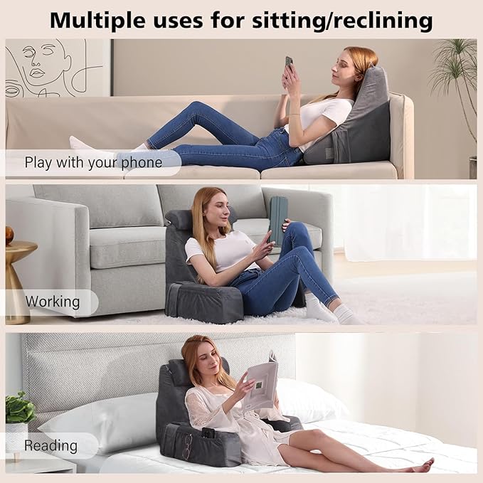 - [Every Detail in Mind]: Our back pillow for bed sitting up features cozy, soft fabric for maximum comfort, handy pockets on the armrests for convenient storage, a removable cover that's machine-washable for easy cleaning, and a top handle design for effortless portability, allowing you to move it around with ease. Enjoy comfort and convenience at its finest with our thoughtfully crafted reading pillow!